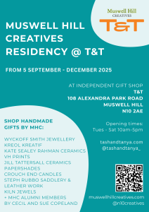 For the last minute brigade the window is closing fast. You will still be able to buy stock items from me at the studio last minute. A new outlet for me this year. I am one of the Muswell Hill Creatives who have a residence at Tash and Tanya’s new shop on Alexandre Park Road. (They didn’t go far from their old site.) You will find a hand picked selection of gift ideas from members. And do I need to mention that T&T’s new shop is filled to the brim with great gift ideas.